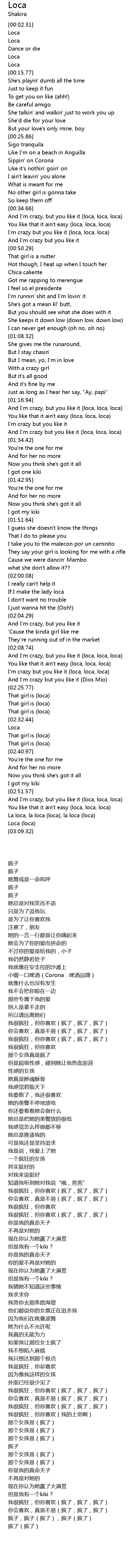 | [03:00.93] | La loca, la loca loca, la loca loca |