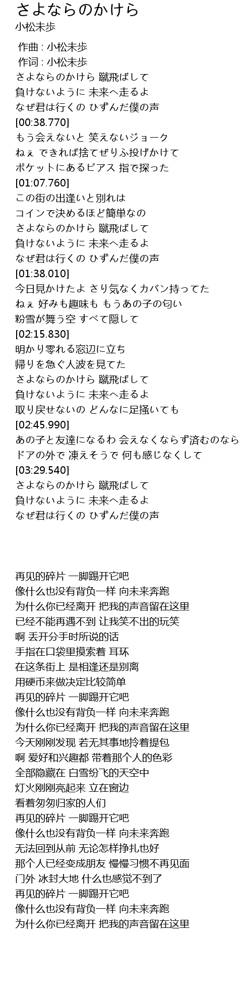 | [03:30.560] | 再见的碎片 一脚踢开它吧 |
