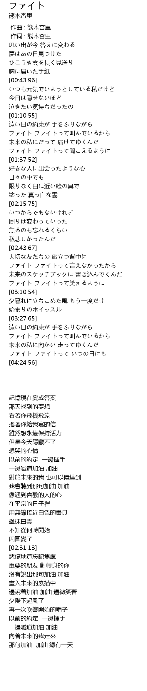 | [04:17.40] | ファイト ファイトって いつの日にも |