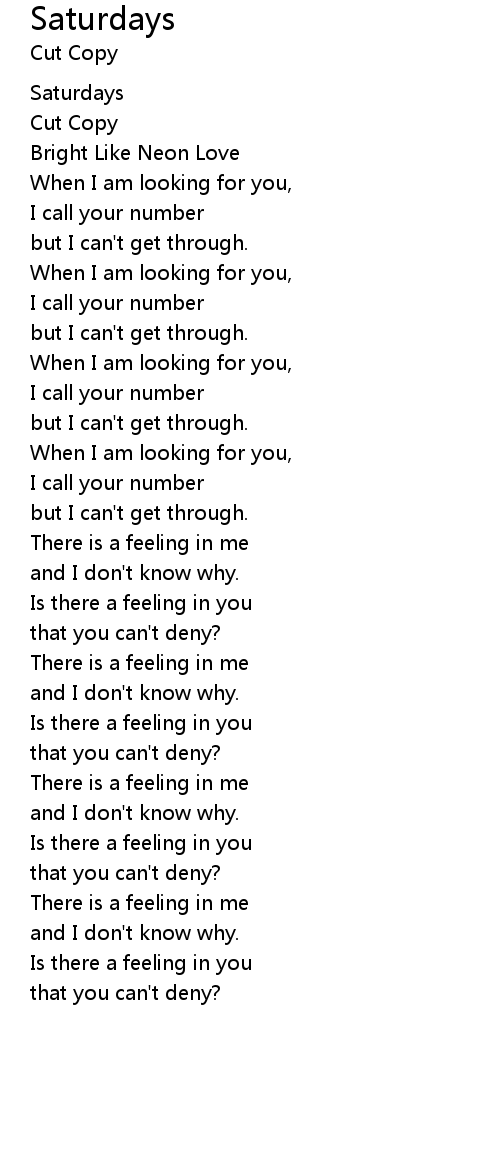 Saturdays 歌词