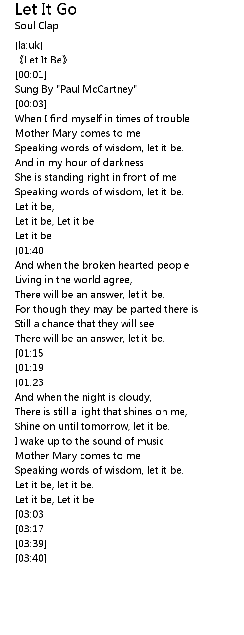 | [02:13][01:15] | Let it be, let it be. |