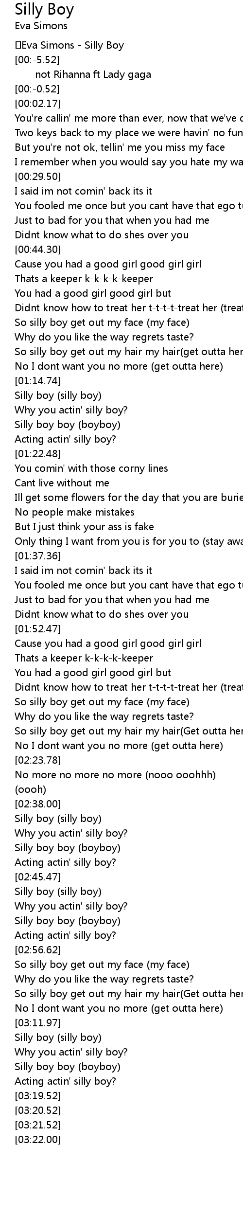 [02:50.39] Silly boy boy (boyboy)