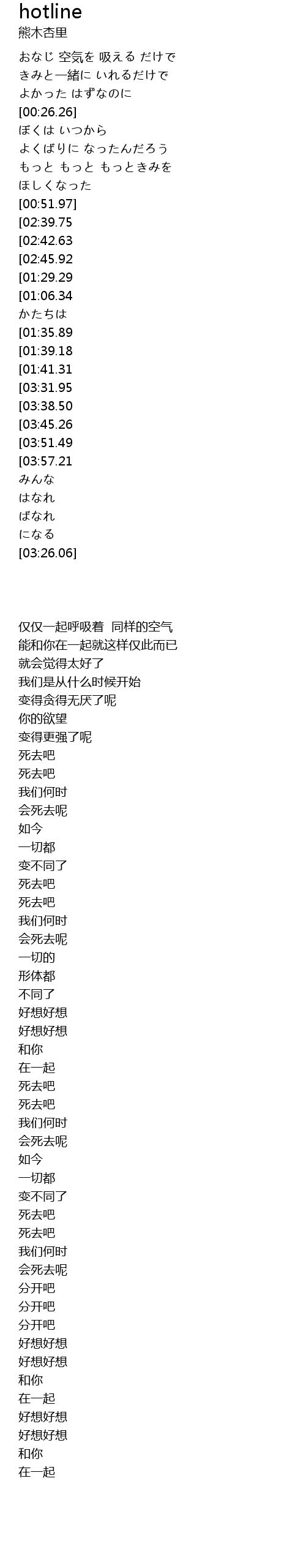 | [04:18.67][03:51.49][02:05.74] | hot line |