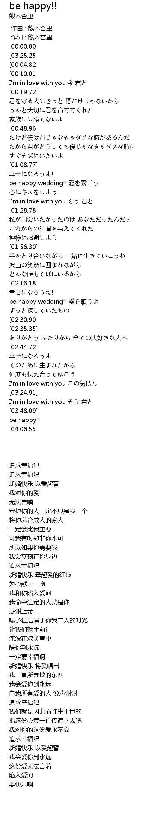 | [03:28.82][00:04.82] | be happy wedding!! ai shi |