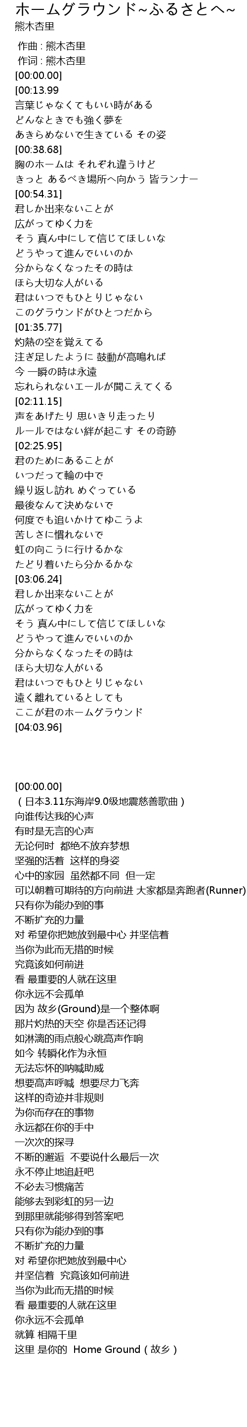 | [03:55.42] | 这里 是你的 Home Ground(故乡) |