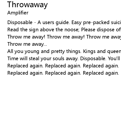 | Time will steal your souls away. Disposable. You'll be replaced again. | |