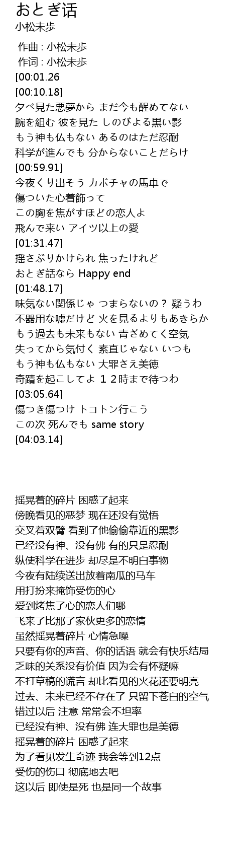| [01:41.53] | おとぎ話なら Happy end |