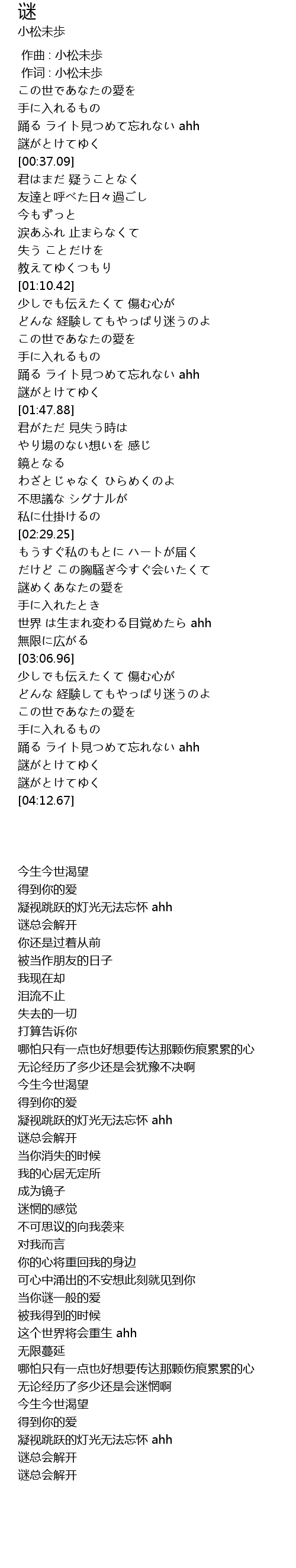 | [03:54.35] | 凝视跳跃的灯光无法忘怀 ahh |