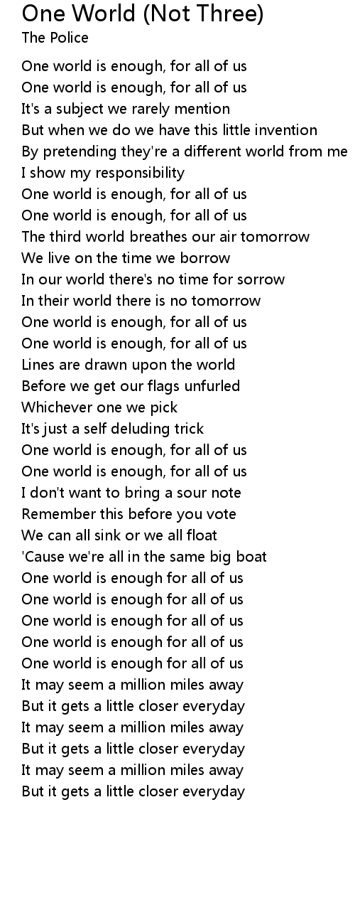 One world is enough for all of us |