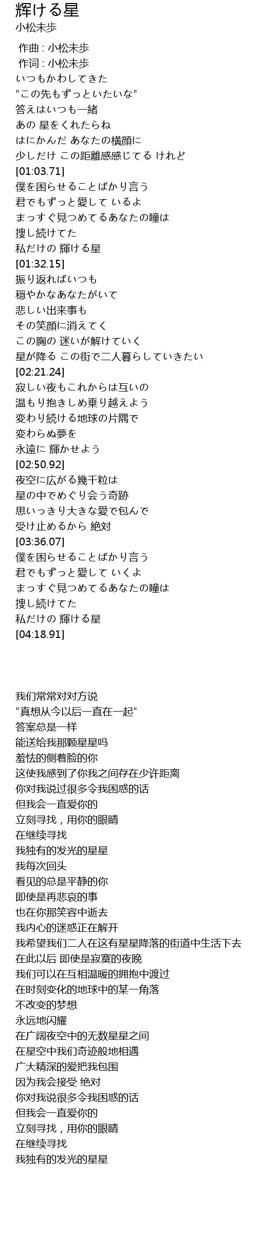 | [03:21.15] | 星の中でめぐり会う奇跡 |