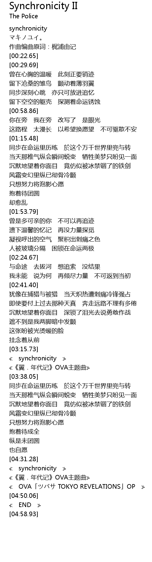 | [03:31.23] | ≮《翼.年代记》OVA主题曲≯ |