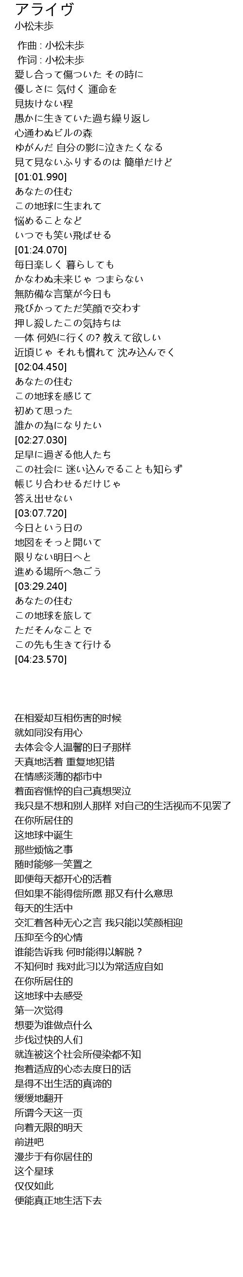 | [00:01.00] | 作词 : 小松未歩 |