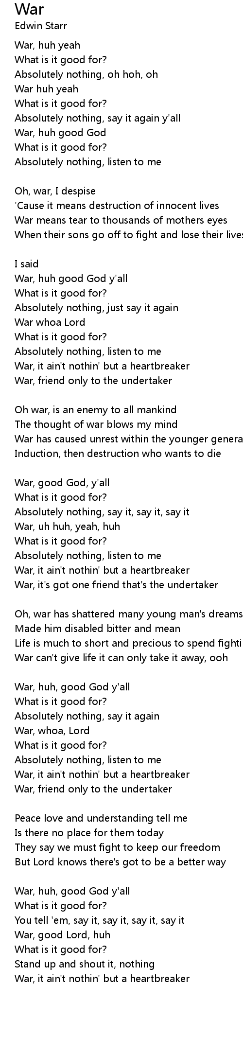 War, huh good God |