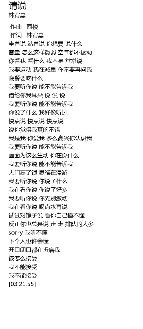 | [01:50.14] | 我要听你说 能不能告诉我 |