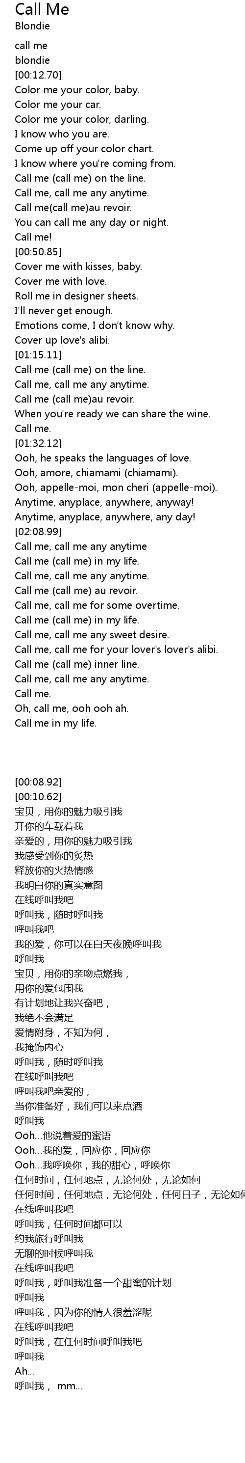 [03:12.96] 呼叫我,在任何时间呼叫我吧