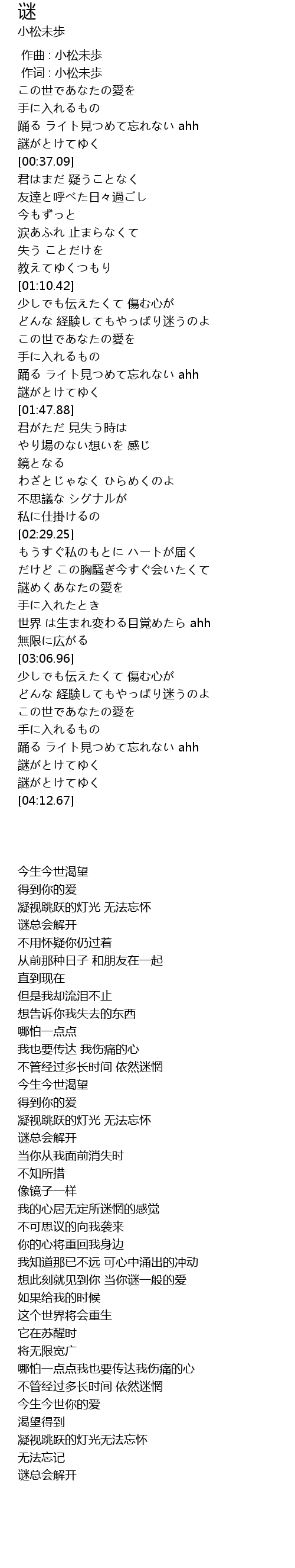 | [00:01.00] | 作词 : 小松未歩 |