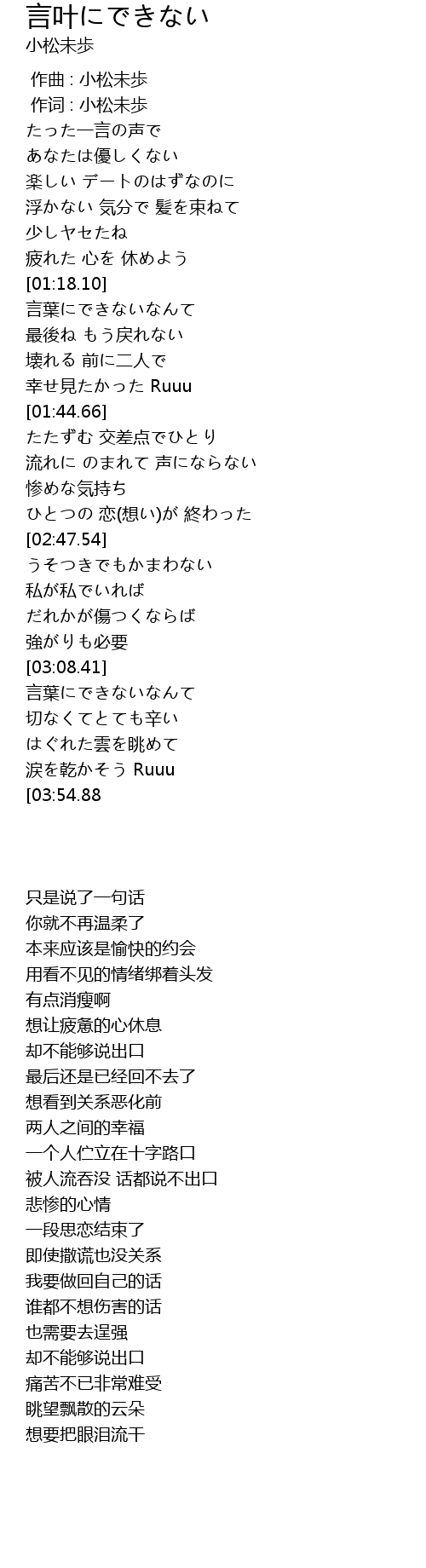 | [00:01.00] | 作词 : 小松未歩 |
