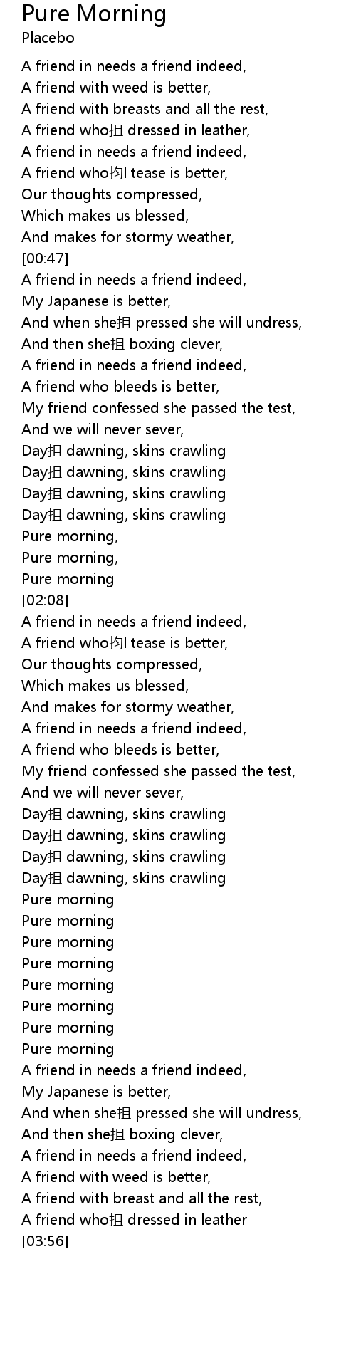 | [01:58] | Pure morning, |