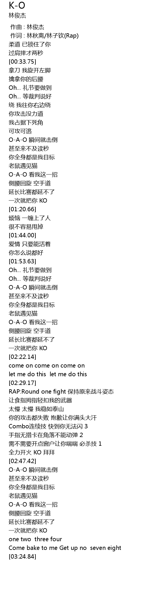 | [02:03.47] | O-A-O 瞬间就击倒 |