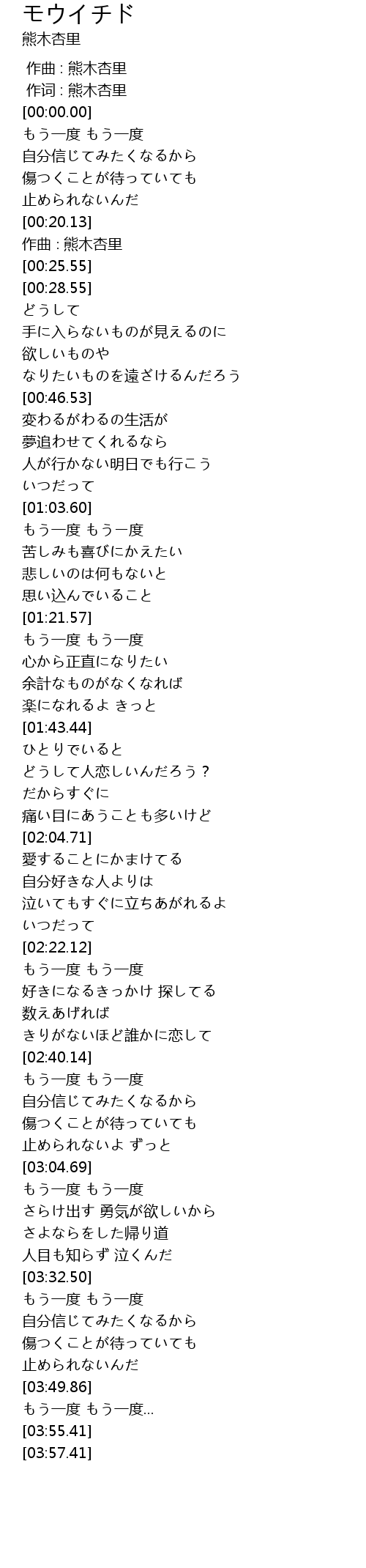 | [00:00.00] | 作曲 : 熊木杏里 |
