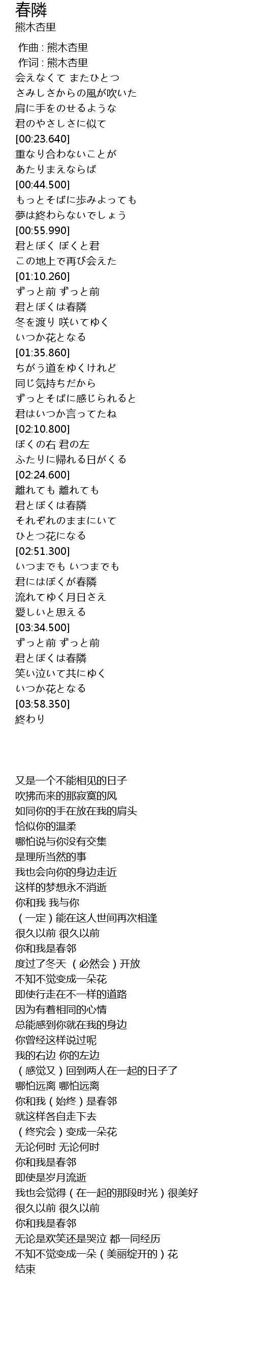 | [02:32.500] | 你和我(始终)是春邻 |