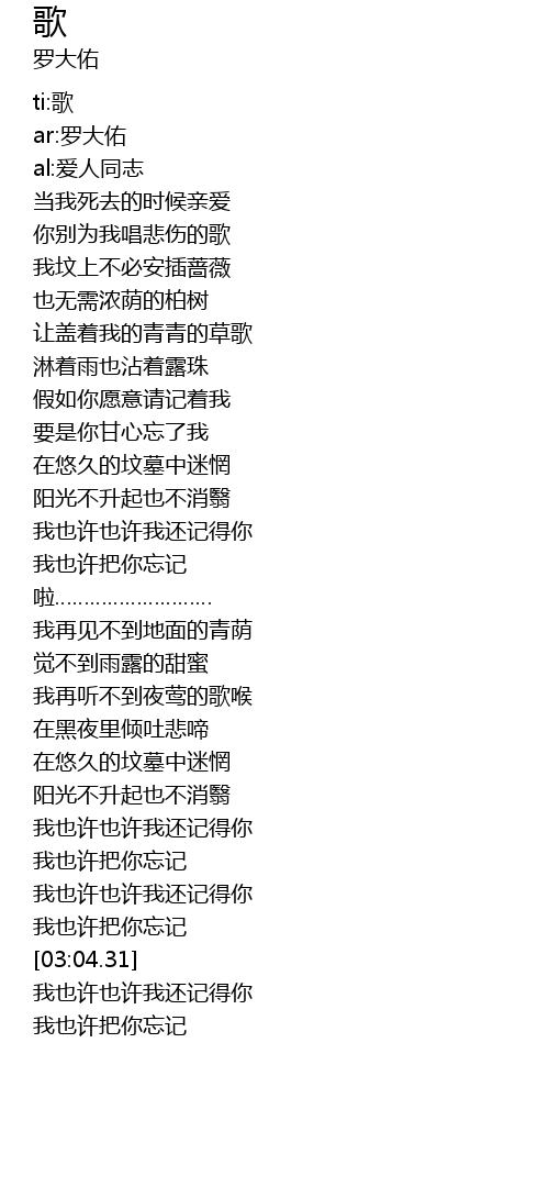 | [00:17.95] | 你别为我唱悲伤的歌 |