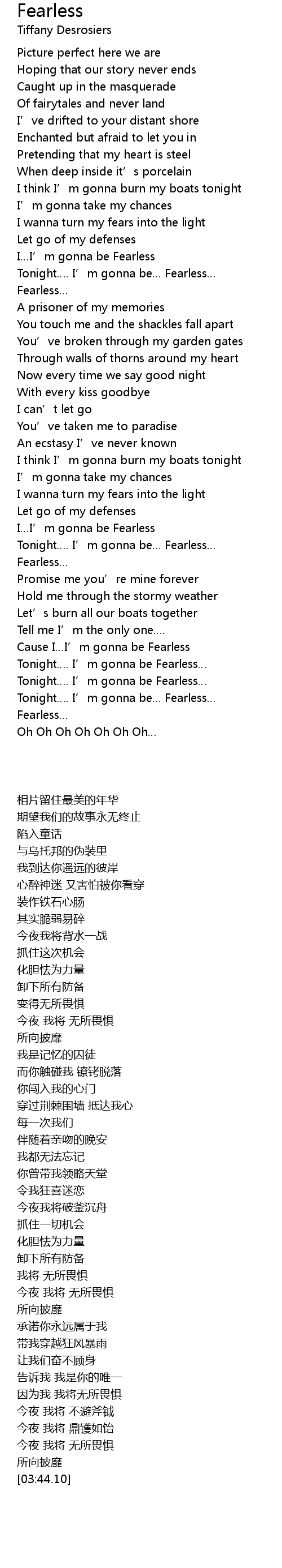 | [03:19.22] | Tonight. I' m gonna be Fearless |
