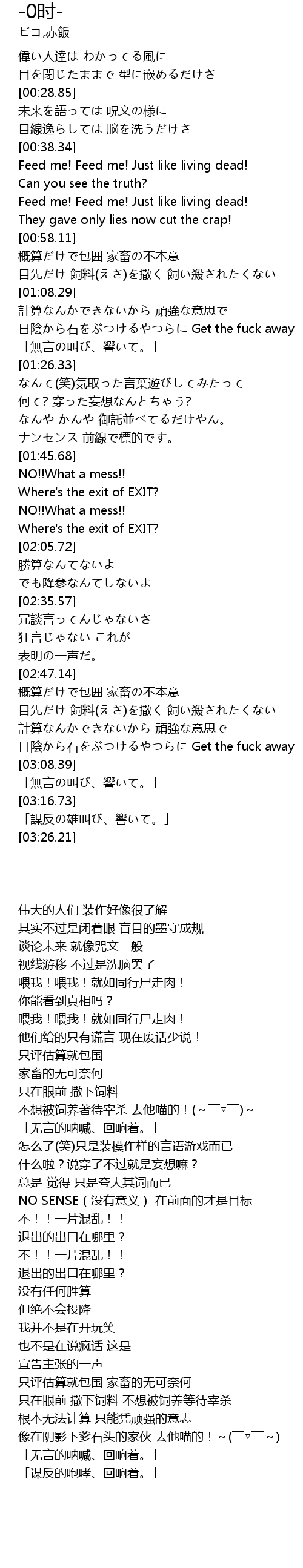 | [02:54.50] | 目先だけ 飼料(えさ)を撒く 飼い殺されたくない |