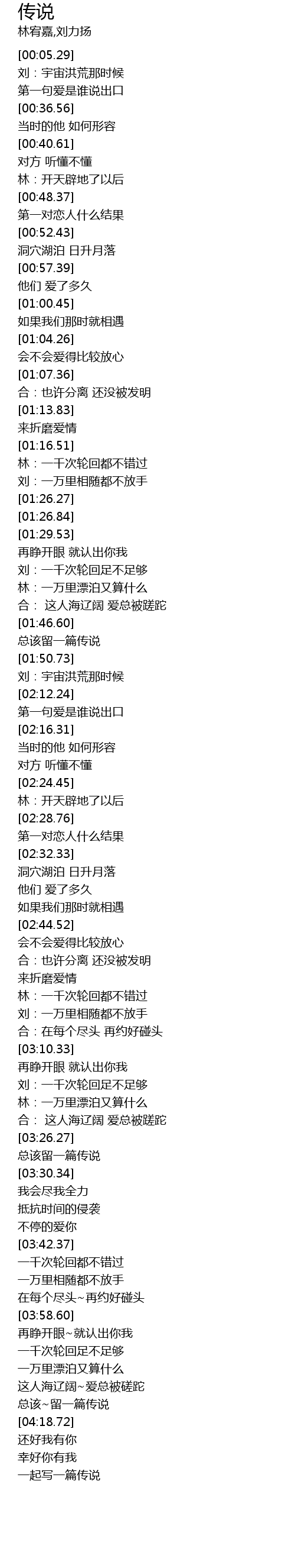| [04:15.38] | 总该~留一篇传说 |