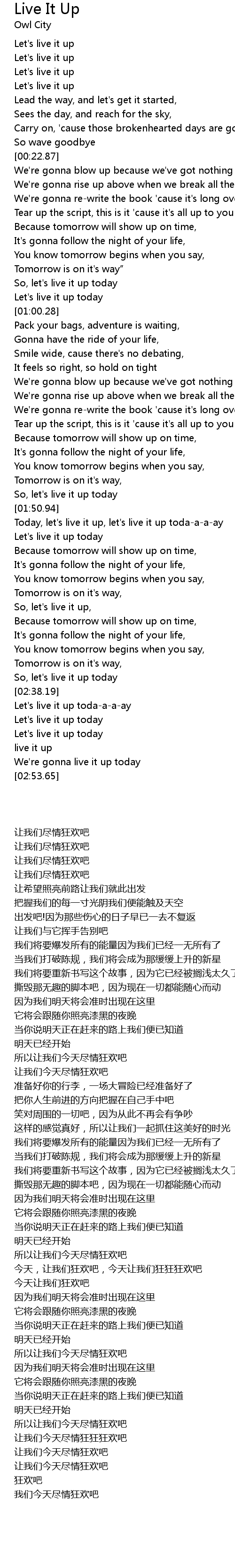 | [01:58.00] | Today, let' s live it up, let' s live it up todaaaay |