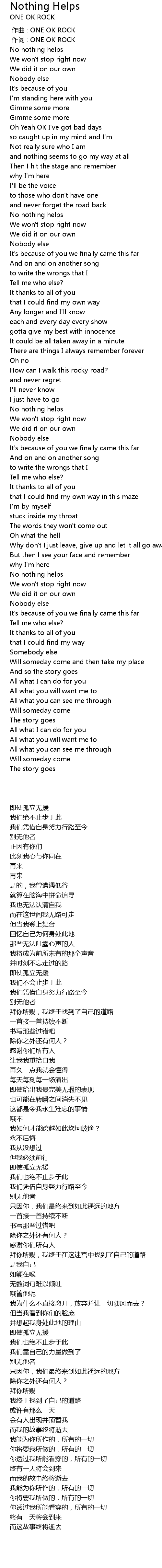 | 歌曲 | Nothing Helps |