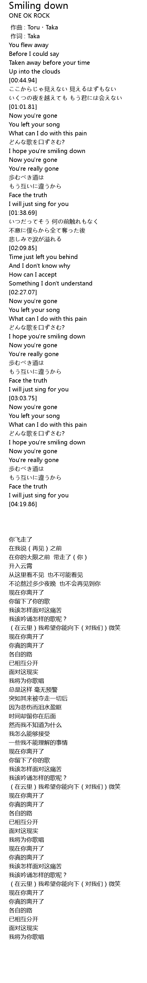 | [03:56.52] | (在云里)我希望你能向下(对我们)微笑 |