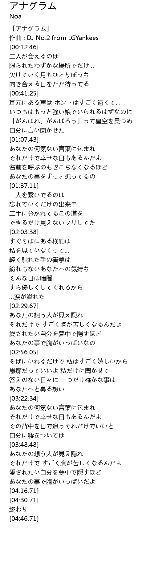 | [00:00.46] | 「アナグラム」 |