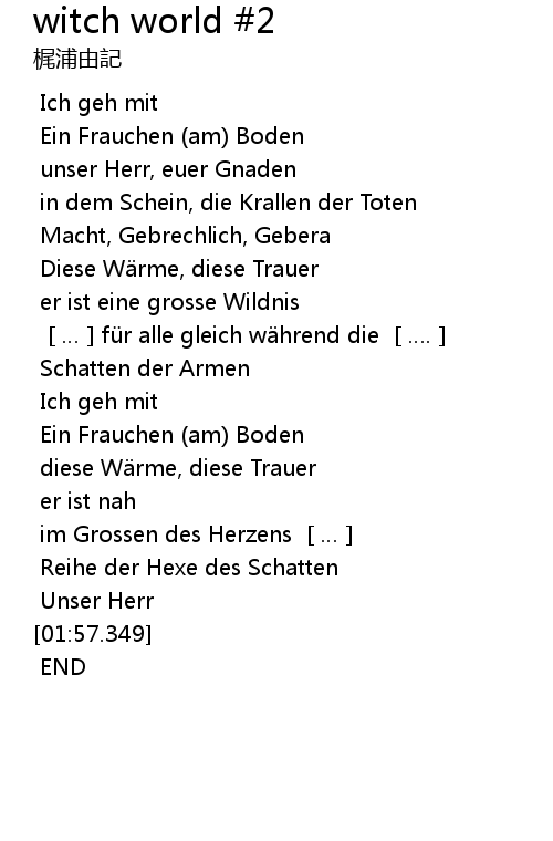 | [01:40.537] | Reihe der Hexe des Schatten |