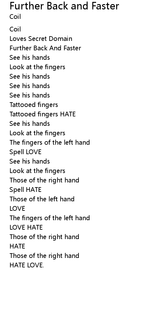 | 歌曲 | Further Back and Faster |