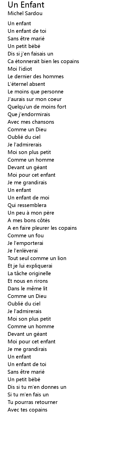| 歌曲 | Un Enfant |