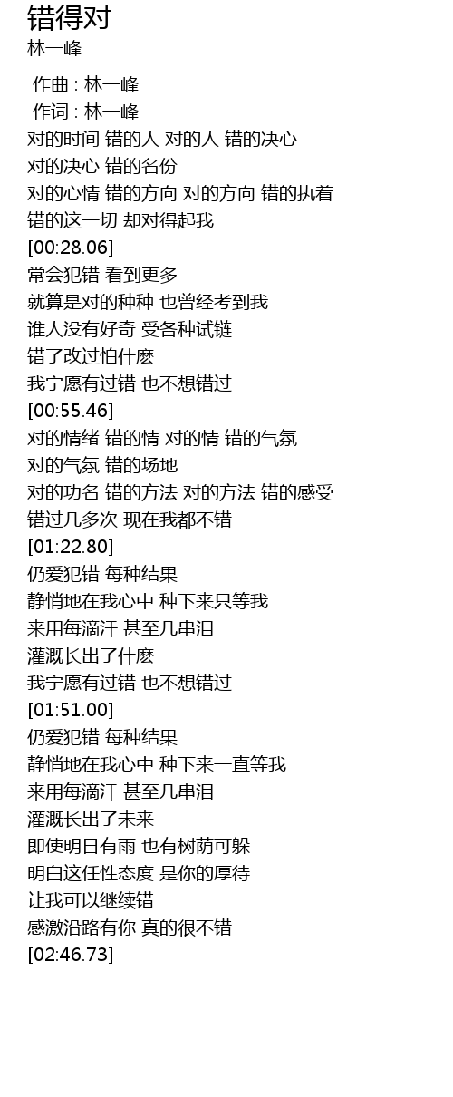 | [00:00.00] | 作曲 : 林一峰 |