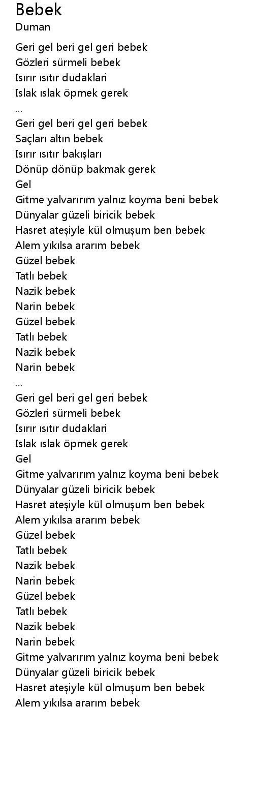 | Hasret ate iyle kü l olmu um ben bebek | |