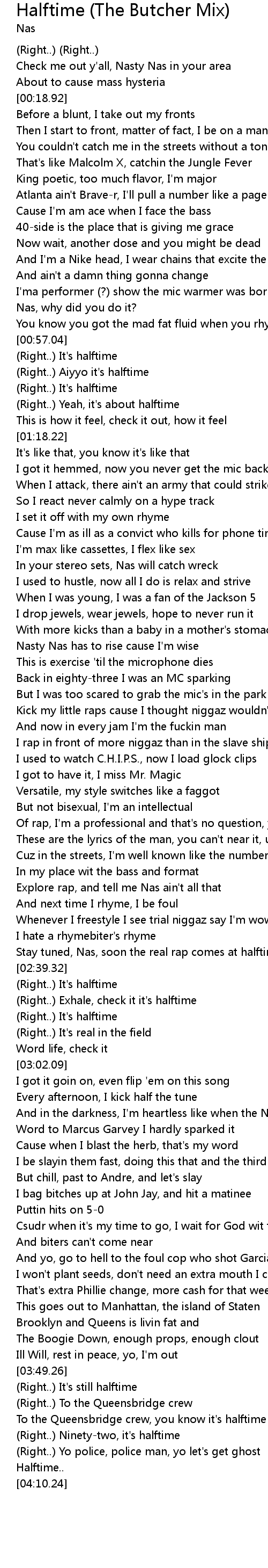 | [03:58.74] | To the Queensbridge crew, you know it's halftime |