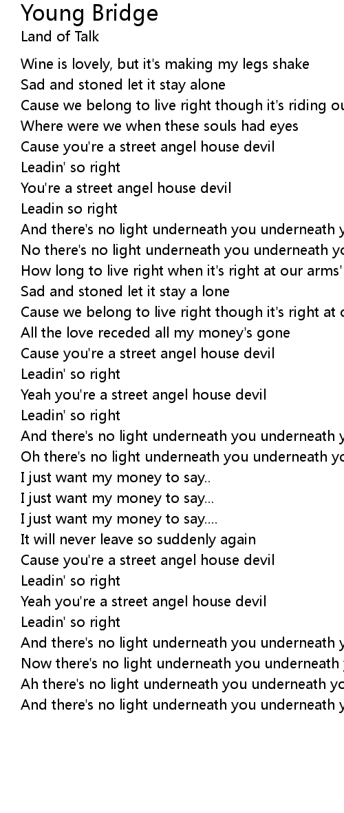 Yeah you're a street angel house devil |