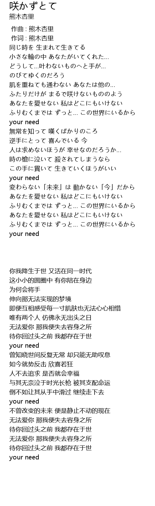 | [00:01.00] | 作词 : 熊木杏里 |