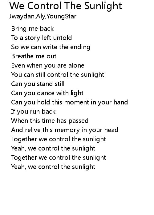 | [01:28.119] | Yeah, we control the sunlight |