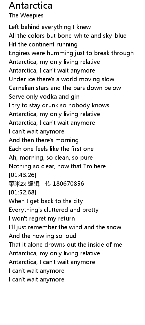 | [01:04.92] | Antarctica, I can't wait anymore |