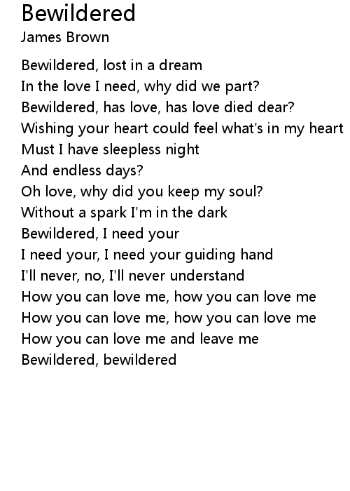 Bewildered, I need your |