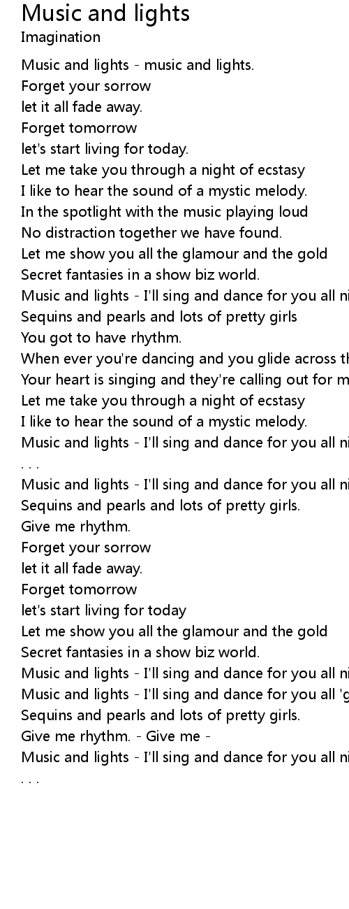 Music and lights - I'll sing and dance for you all night |