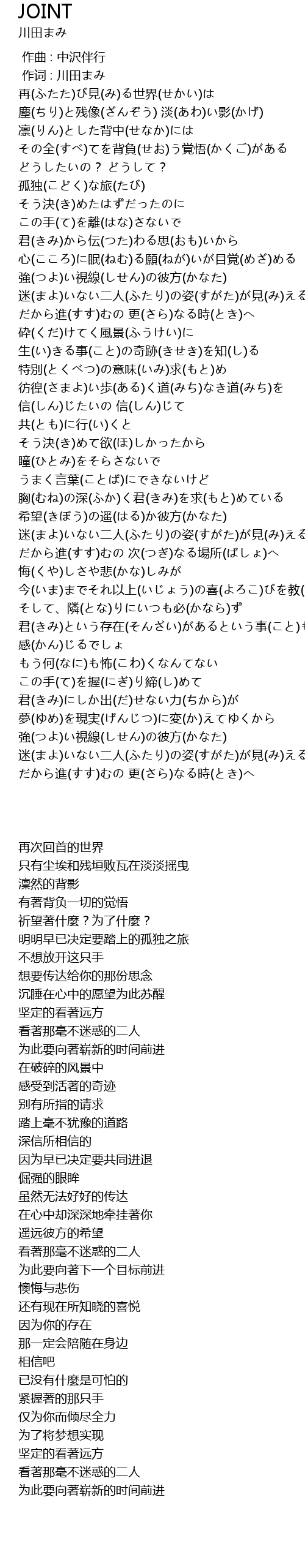 | [02:27.560] | だから進(すす)むの 次(つぎ)なる場所(ばしょ)へ |