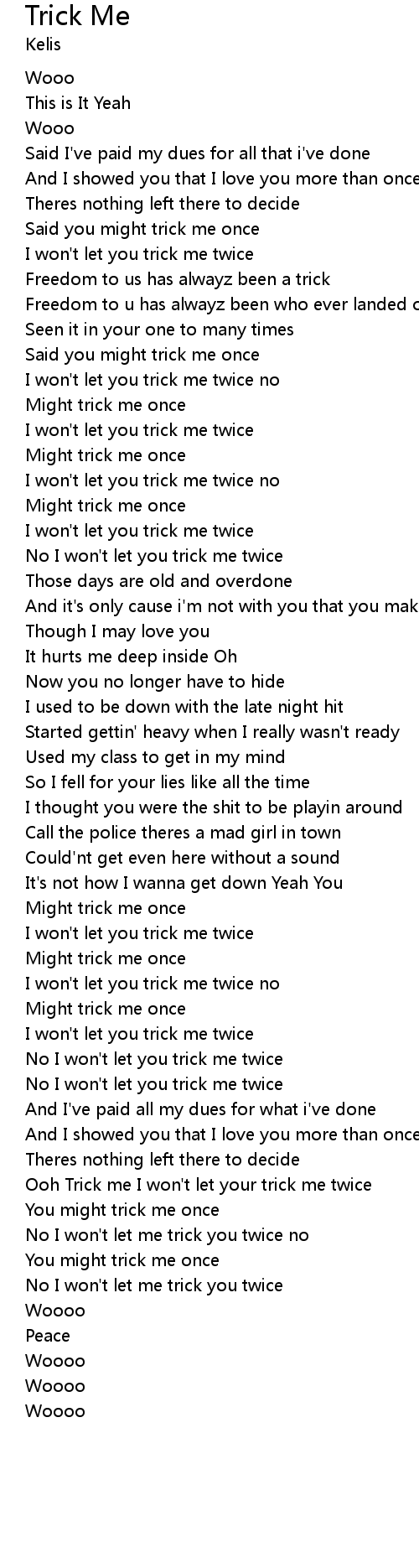Ooh Trick me I won't let your trick me twice