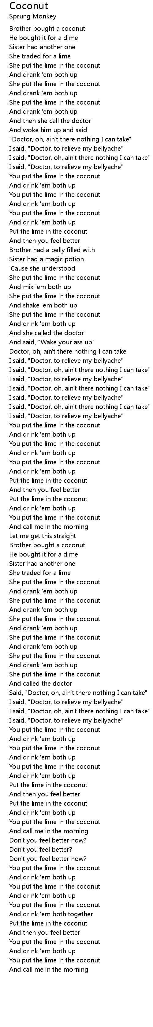Put the lime in the coconut |