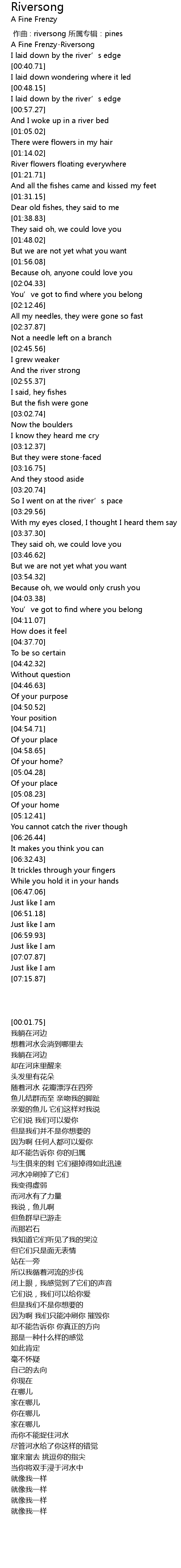 | [00:00.00] 作曲 : riversong 所属专辑:pines] | |