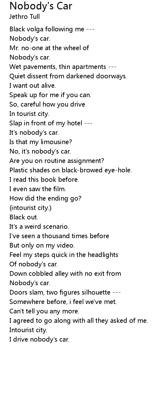 I drive nobody's car. |